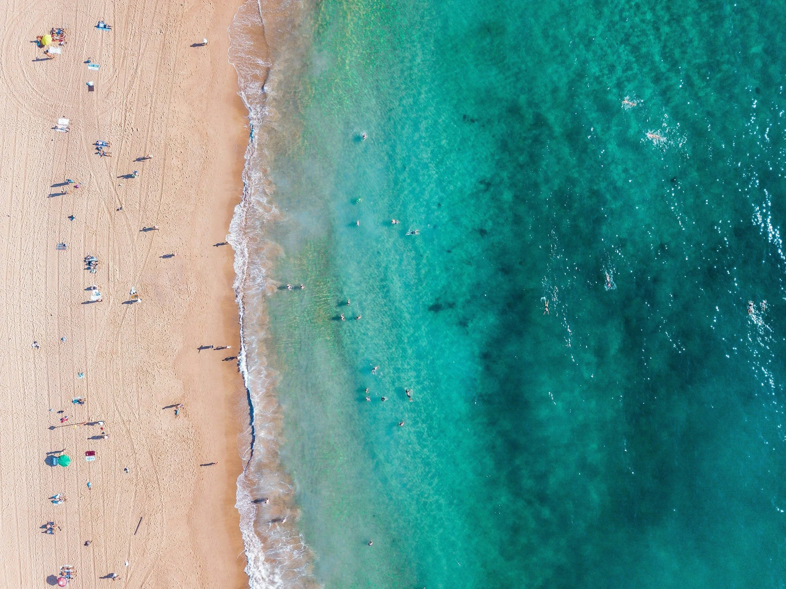 Summer Season Theme: contemporary aerial seascape artwork inspired by the distinctive style of Alma Tipon.