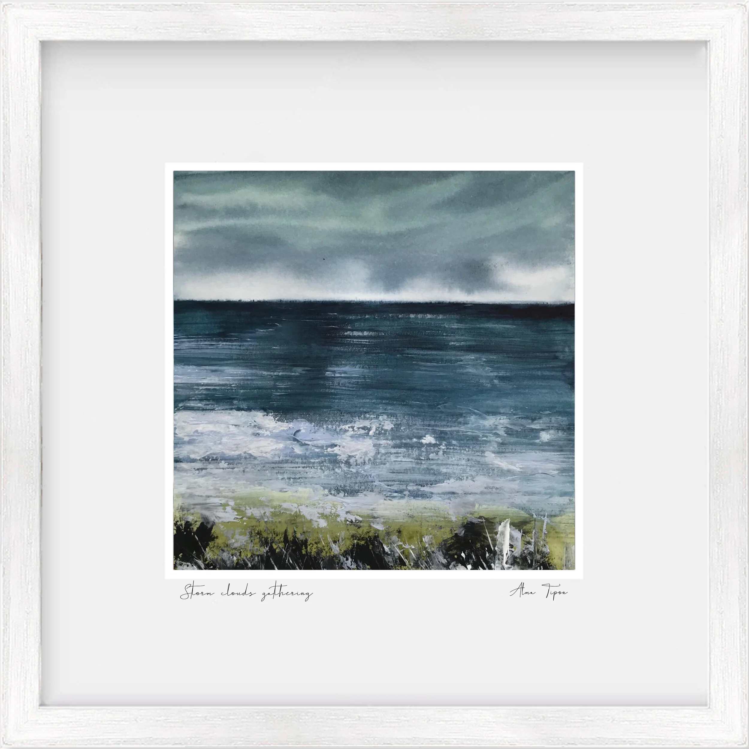 When you buy this painting, you will receive it all well prepared, sealed from dust and ready to be hang. This is customised the way I like it to be. It features a luxury double mount with a minimal yet modern bright-white structure. If you want the frame in a different colour, please don’t hesitate to get in touch. I’ll be happy to assist you all the way!