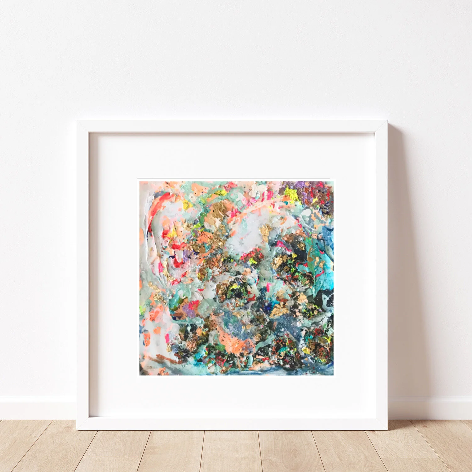 You will receive it all well prepared, sealed from dust and ready to be hung. It features a luxury double mount with a minimal yet modern bright-white structure.